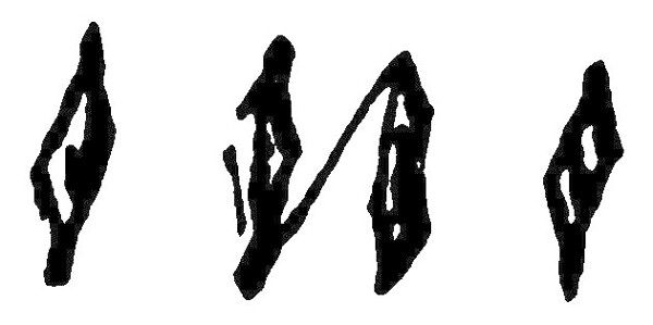 in einer Art von Pfeilschrift. Was diese bedeuten, ist schwer zu rathen, ob man ihnen gleich, auf unsere Zeiten, einen ziemlich directen Bezug geben könnte. Wundersam ist es freylich, daß man in keiner Schwefelsammlung einen Abdruck, in keinem Werke eine Abbildung davon gesehen. Meyer selbst, bey seiner weitumfassenden Kenntniß, erinnert sich dessen nicht. Dieser Stein ist mir seit 10 Jahren schon bekannt, die Hände, die ihn damals hielten, sind durch Schulden und Tod aufgelöst. Die sehr saubere Fassung deutet auf die erste Hälfte des vorigen Jahrhunderts. Verzeih, daß ich über diesen mir so werthen Talisman so viele Worte mache.